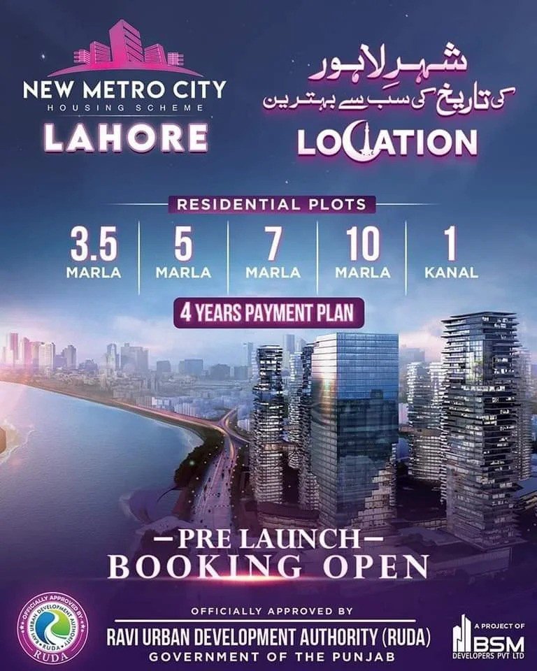 New Metro City Lahore! This modern residential community is designed to provide the perfect blend of comfort, convenience, and growth. Whether you are looking for a peaceful home for your family or a smart investment for the future, New Metro City Lahore offers affordable plots with flexible payment plans, making property ownership easier than ever.